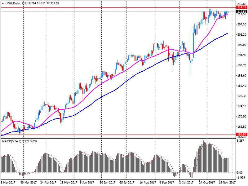 В материале, подготовленном к встрече с инвесторами 28 ноября, компания UnitedHealth (UNH) сообщила, что по итогам 2018 финансового года (ФГ) рассчитывает заработать прибыль на уровне $10.55-10.85 в расчёте на одну акцию (против среднего прогноза аналитиков $10.83) при выручке $223-225 млрд. (против среднего прогноза аналитиков $217.84 млрд.).