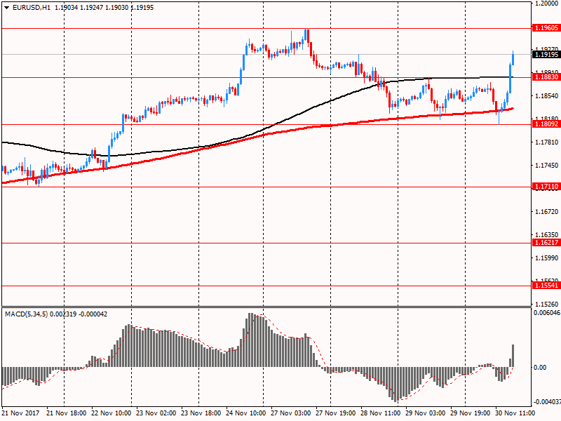 Доллар США резко подешевел против основных валюты, что было обусловлено техническими факторами и сообщением New York Times о том, что Белый дом планирует заменить госсекретаря Рекса Тиллерсона на Майка Помпео. Сейчас пара EUR/USD торгуется на $1.1919