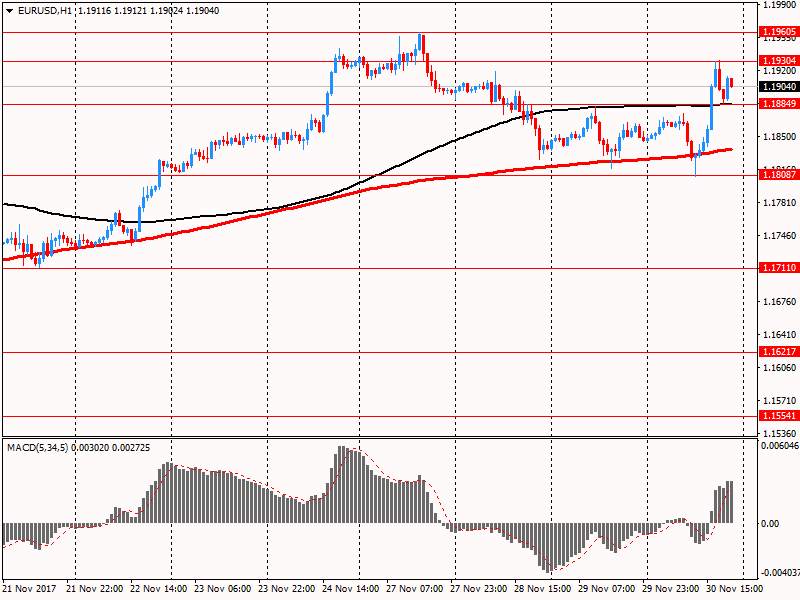 Падение доллара наблюдалось несмотря на благоприятные данные по США. Министерство торговли США заявило, что потребительские расходы выросли на 0,3% в октябре после почти 1%-ного прироста в предыдущем месяце, который был самым большим за восемь лет. Результат совпал с прогнозами экономистов. Личные доходы выросли на 0,4% второй месяц подряд. Тем временем уровень сбережений увеличился до 3,2% с 3%. В сентябре сбережения упали до 10-летнего минимума. Индекс PCE, предпочтительный показатель инфляции Федерального резерва, в октябре вырос на 0,1%. Так называемый «базовый» показатель, который исключает продовольствие и энергию, вырос на 0,2%. Уровень инфляции по сравнению с 2016 годом немного снизился, до 1,6%. Базовая ставка была равна 1,4%. Американцы увеличили расходы в начале осени, и есть небольшая вероятность того, что это прекратиться при приближении ожидаемого сильного праздничного сезона. Потребительское доверие недавно достигло 17-летнего максимума, что отражает сильное здоровье экономики. Американцы охотнее тратят и чувствуют себя комфортно, экономя меньше.