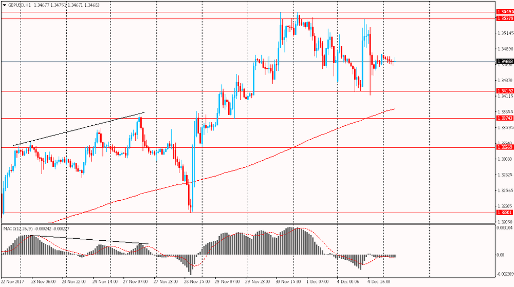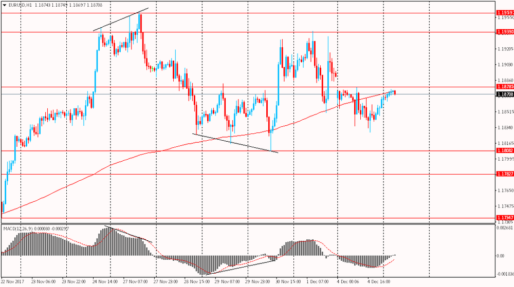 EUR/USD: в ходе азиатской сессии пара торговалась в узком диапазоне $1.1860-75. Пара уже третий день корректируется после подъема накануне. Глобально евро торгуется в рамках устойчивого восходящего тренда от 7 ноября. Более того, 30 ноября на часовом графике сформировалась бычья дивергенция по индикатору MACD, что сигнализирует о возможном росте пары. По этой причине стоит присматриваться к покупкам пары на коррекциях в глобальном восходящем тренде. Ближайшей поддержкой выступает уровень $1.1810 (минимум 30 ноября)