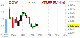 Большинство компонентов индекса DOW в минусе (20 из 30). Лидер роста - McDonald's Corporation (MCD, +1.51%). Аутсайдер - The Walt Disney Company (DIS, -2.34%).