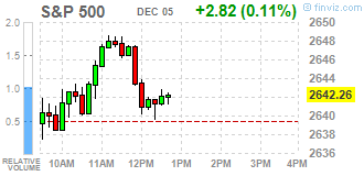 Большинство секторов S&P в минусе. Больше всего вырос технологический сектор (+0.6%). Наибольшее снижение показывает сектор коммунальных услуг (-0.9%).