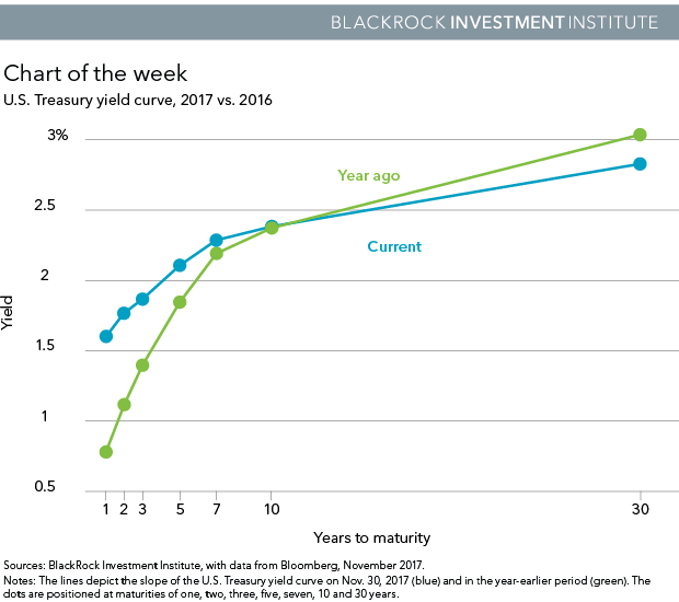 Кривая доходности казначейства США сглаживается в течение большей части 2017 года и распространяется между длинными и короткими сроками погашения, которые недавно сократились до десятилетних минимумов. Это, как правило, феномен позднего цикла, указывающего на замедление роста, но, по мнению главного инвестиционного стратега BlackRock Ричарда Торилли, не на этот раз.