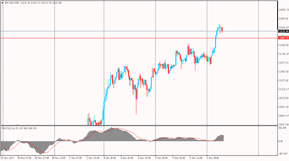 Сегодня утром цена на Биткоин впервые преодолела психологический уровень $12000. Пара BTC/USD выросла к $12236, и тем самым обновила свой исторический максимум. Тем не менее, стоит обратить внимание на то, что на часовом графике стала формироваться медвежья дивергенция и дополнительно 14-ти дневный индекс относительной силы (RSI (14) на D1), находится выше уровня 70. Все это сигнализирует о возможной смене направления движения цены.