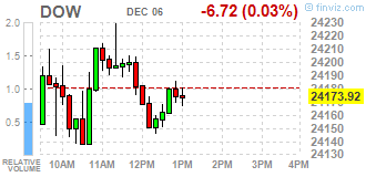 Большинство компонентов индекса DOW в минусе (19 из 30). Лидер роста - Microsoft Corporation (MSFT, +1.52%). Аутсайдер - Merck & Co., Inc. (MRK, -2.31%).