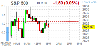 Большинство секторов S&P в минусе. Больше всего вырос сектор промышленных товаров (+0.3%). Наибольшее снижение показывает сектор сырьевых материалов (-1.2%).