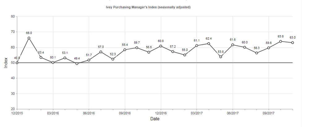 Результаты исследований, представленные Ассоциацией менеджеров по закупкам Канады и Школой бизнеса Ричарда Айви, показали: индекс деловой активности менеджеров слегка ухудшился по итогам ноября.