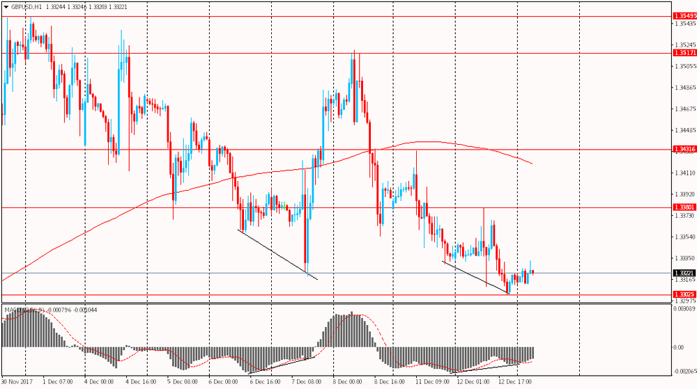 GBP/USD: в ходе азиатской сессии пара торговалась в диапазоне $1.3310-30 после вчерашнего снижения. Однако, фунт остается в восходящем канале от 3 ноября. В этой ситуации наиболее уместным будет присматриваться к покупкам пары на окончании коррекции. Ближайшая поддержка находится на уровне $1.3305 (минимум 12 декабря). Более того, на часовом графике сформировалась бычья дивергенция по индикатору MACD.