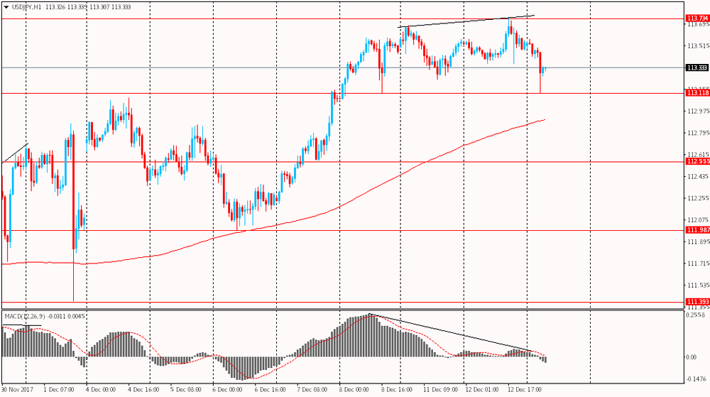 USD/JPY: в ходе торгов азиатской сессии пара упала к Y113.10. Несмотря на то, что глобально пара торгуется в восходящем канале от 27 ноября, на часовом графике сформировалась медвежья дивергенция по индикатору MACD, что сигнализирует о возможной смене направления движения цены. В данной ситуации наиболее уместным будет продавать пару с короткими целями. Ближайшим сопротивлением выступает уровень Y113.70 (максимум 12 декабря)