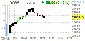 Большинство компонентов индекса DOW в плюсе (19 из 30). Лидер роста - Caterpillar Inc. (CAT, +3.47%). Аутсайдер - International Business Machines Corporation (IBM, -1.36%).