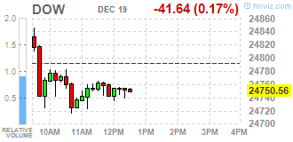 Большинство компонентов индекса DOW в плюсе (19 из 30). Лидер роста - The Walt Disney Company (DIS, +0.95%). Аутсайдер - Microsoft Corporation (MSFT, -1.15%).