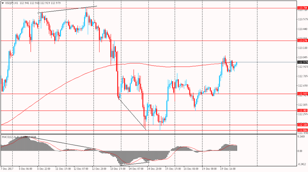 USD/JPY: в ходе торгов азиатской сессии пара выросла к Y113.05. Пара уже 3-й день корректируется после недавнего снижения. Ранее пара закрепилась ниже уровня поддержки восходящего канала от 27 ноября и на данный момент находится под контролем медведей. В данной ситуации наиболее уместным будет присматриваться к продажам пары на окончание коррекции. Ближайшим сопротивлением выступает уровень Y113.25 (максимум американской сессии 13 декабря)