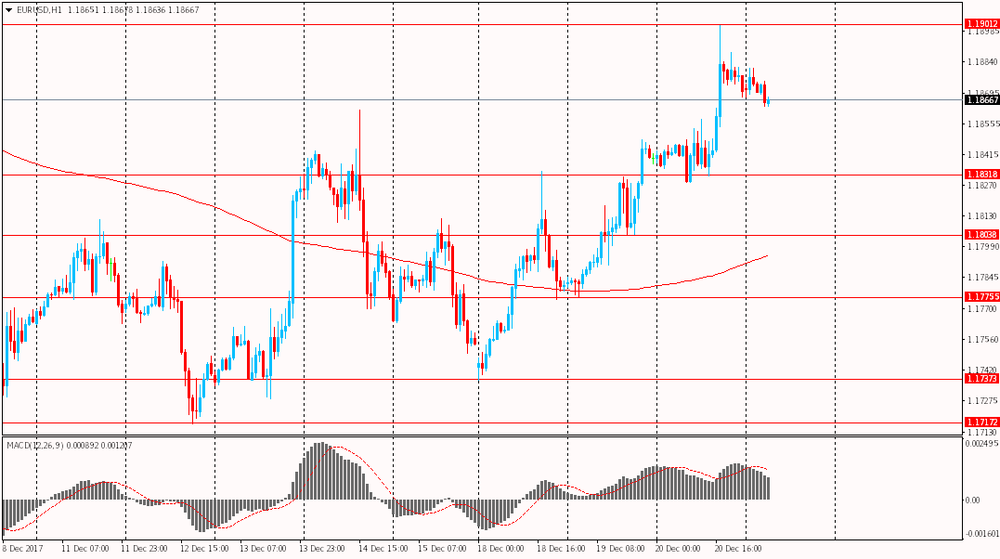 EUR/USD: в ходе азиатской сессии пара торговалась в диапазоне $1.1860-80. Пара вчера закрепилась выше уровня сопротивления нисходящего канала от 27 ноября и на данный момент находится под контролем быков. В данной ситуации стоит присматриваться к покупкам пары на коррекциях. Ближайшей поддержкой выступает уровень $1.1830 (минимум 20 декабря)