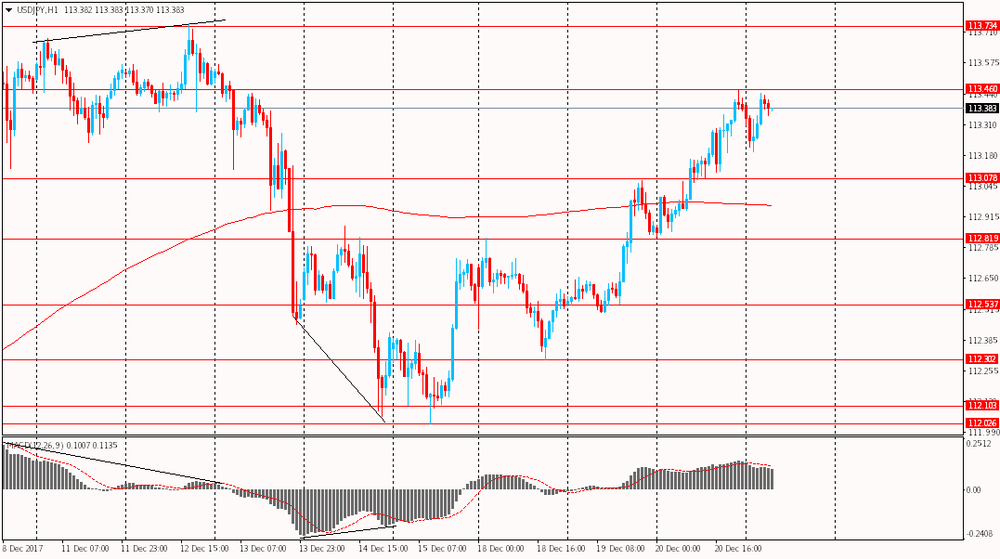 USD/JPY: в ходе торгов азиатской сессии пара торговалась в диапазоне Y113.25-45. Пара уже 4-й день корректируется после недавнего снижения. Ранее пара закрепилась ниже уровня поддержки восходящего канала от 27 ноября. В данной ситуации наиболее уместным будет присматриваться к продажам пары на окончание коррекции. Ближайшим сопротивлением выступает уровень Y113.45 (максимум 20 декабря)
