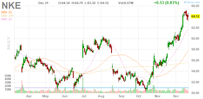 На текущий момент акции Nike (NKE) котируются по $64,12 (+0,83%)