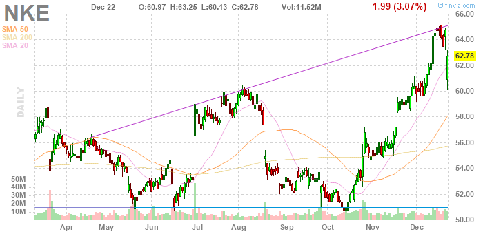 На текущий момент акции Nike (NKE) котируются по $62,78 (-3,07%)
