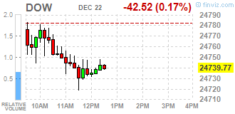 Большинство компонентов индекса DOW в минусе (16 из 30). Лидер роста - Verizon Communications Inc. (VZ, +0.62%). Аутсайдер - NIKE, Inc. (NKE, -3.06%).
