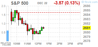 Большинство секторов S&P в минусе. Больше всего вырос сектор коммунальных услуг (+0.2%). Наибольшее снижение показывает сектор здравоохранения (-0.4%).