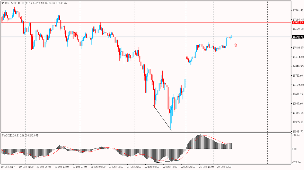 Как и предыдущие дни, сегодня биткоин продолжает восстанавливаться после «рождественского обвала» на прошлой неделе. Несмотря на то, что многие финансовые учреждения и правительства различных стран предупреждают о формировании «пузыря», покупатели по данной криптовалюте упорно продвигают пару выше и уже не так далеко до уровня $17000.