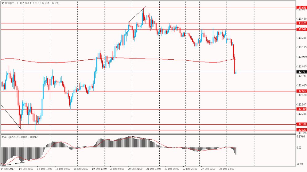 USD/JPY: в ходе торгов азиатской сессии пара упала к Y112.75. Ранее пара закрепилась ниже уровня поддержки восходящего канала от 27 ноября. В данной ситуации наиболее уместным будет присматриваться к продажам пары. Дополнительно на часовом графике сформировалась медвежья дивергенция по индикатору MACD, что сигнализирует о возможном спаде пары. Ближайшим сопротивлением выступает уровень Y113.35-40 (максимумы 22-27 декабря)