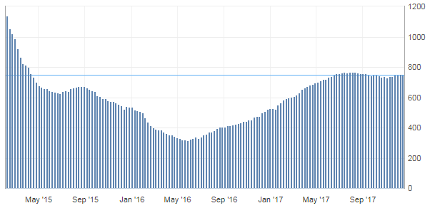 Отчет нефтесервисной компании Baker Hughes показал: с 23 по 29 декабря количество активных буровых установок по добыче нефти в США не изменилось, составив 747 единиц. Количество установок по добыче газа уменьшилось на 2 штуки, до 182 единиц. Тем временем, общее число буровых установок (газовых и нефтяных) снизилось на 2 единицы, до 929 штук.