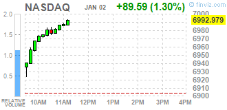 Основные фондовые индексы США выросли в первый торговый день года, чему способствовали рост акций сектора технологий и потребительских товаров.