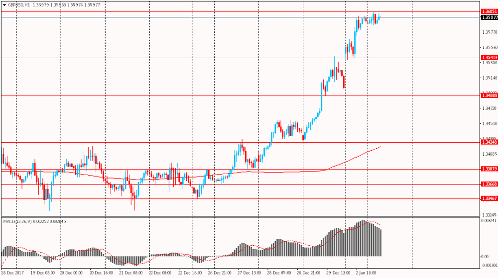 GBP/USD: в ходе азиатской сессии пара выросла к $1.3605. Глобально пара остается в восходящем канале от 3 ноября. Однако, как и на евро, 14-ти дневный индекс относительной силы (RSI (14) на D1), находится выше уровня 70, что сигнализирует о возможной смене направления движения цены и образовании коррекции. В этой ситуации наиболее уместным будет находится вне рынка и ждать снижения пары как возможность купить по выгодной цене. Ближайшая поддержка находится на уровне $1.3540 (минимум 2 января)