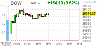 Большинство компонентов индекса DOW в плюсе (24 из 30). Лидер роста - DowDuPont Inc. (DWDP, +2.13%). Аутсайдер - Intel Corporation (INTC, -2.50%).