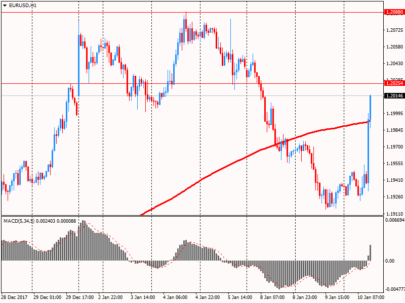 Пара EUR/USD прибавила около 90 пкт и в настоящий момент торгуется на уровне $1.2014