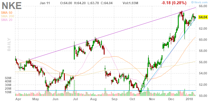 С начала 2018 года Nike вырос на 2,2%, отставая от роста S&P 500 в 3%, но нужно отметить, что восемь торговых дней не создает тенденции.