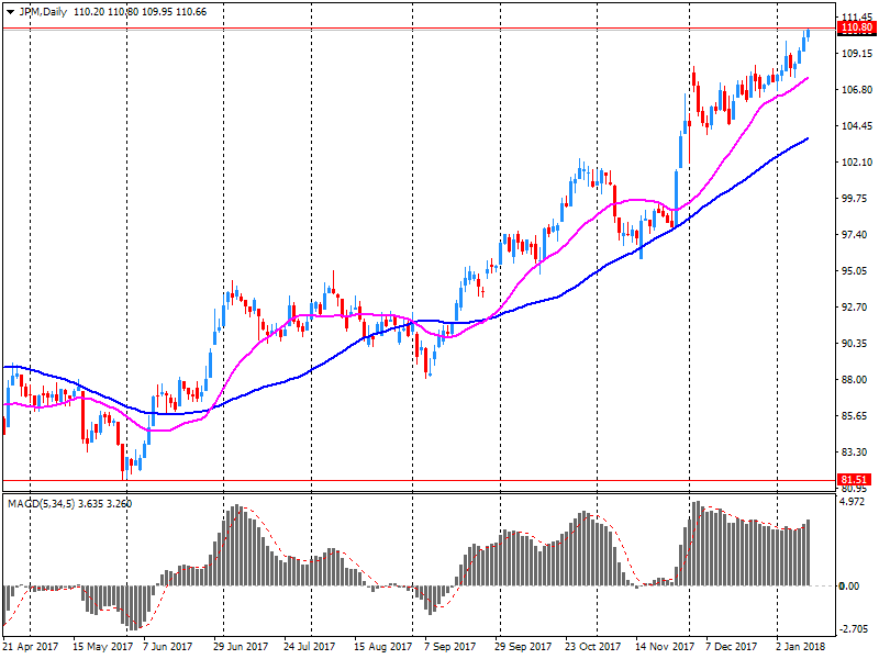 Согласно обнародованному отчету, прибыль компании JPMorgan Chase (JPM) по итогам четвертого квартала 2017 финансового года (ФГ) достигла $1.76 в расчете на одну акцию (против $1.71 в четвертом квартале 2016 ФГ), что оказалось выше среднего прогноза аналитиков на уровне $1.69.