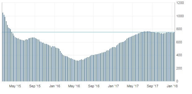 Отчет нефтесервисной компании Baker Hughes показал: с 6 по 12 января количество активных буровых установок по добыче нефти в США выросло на 10 штук, до 752 единиц. Количество установок по добыче газа увеличилось на 5 штук, составив 187 единицы. Тем временем, общее число буровых установок (газовых и нефтяных) подскочило на 15 единиц, до 939 штук.