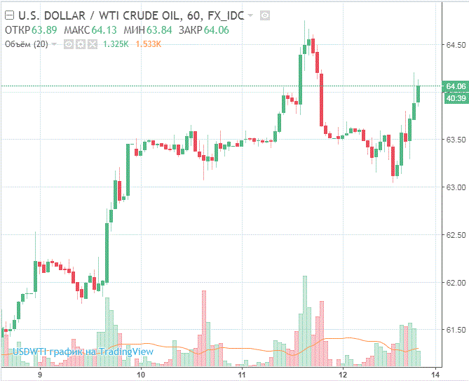 В настоящее время нефть марки West Texas Intermediate торгуется на уровне $64.06 (+0.42%) по сравнению с $63.89 до публикации данных.