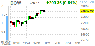 Большинство компонентов индекса DOW в плюсе(25 из 30). Лидер роста - The Boeing Company (BA, +3.60%). Аутсайдер - General Electric Company (GE, -4.42%).
