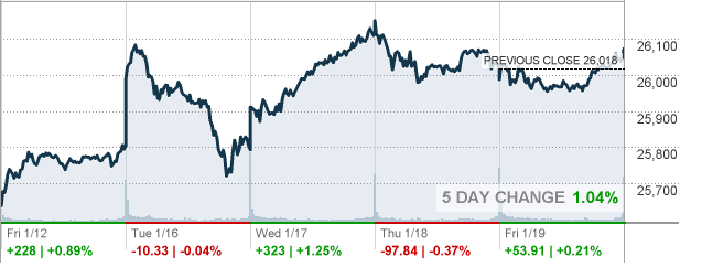 В четверг фондовые рынки США завершили торги в минусе, так как снижение цен на акции сектора коммунальных услуг и базовых ресурсов приостановили ралли, которое ранее привело к тому, что индекс Доу-Джонса достиг своего максимального прироста в 1000 пунктов. Инвесторы также отыгрывали неоднозначные данные по США. Министерства торговли США заявило, что темпы роста строительства жилья в США ослабли больше, чем ожидалось, в декабре, зафиксировав самый большой спад чуть больше, чем за год, на фоне резкого снижения строительства односемейных жилищных единиц после двухмесячного роста. Закладки новых домов снизились на 8,2% до скорректированного с учетом сезонных колебаний уровня 1,192 млн единиц. Ноябрьские темпы продаж были пересмотрены до 1,299 млн. единиц с ранее озвученных 1,297 млн. единиц Декабрьское процентное снижение было самым большим с ноября 2016 года. Экономисты прогнозировали, что закладки снизятся до 1,275 млн единиц. Разрешение на строительство уменьшилось на 0,1% до 1,302 млн единиц в декабре. Разрешения на строительство увеличились на 4,7% до 1,263 млн единиц в 2017 году, это также самый высокий уровень с 2007 года. Между тем, Министерство труда сообщило, что число американцев, подавших заявки на пособие по безработице, упало больше, чем ожидалось на прошлой неделе, до самого низкого уровня за 45 лет, но снижение, вероятно, завысило здоровье рынка труда, поскольку были оценены данные в нескольких штатах. Первичные обращения за государственными пособиями по безработице снизились на 41 000 до 220 000 с учетом сезонных колебаний за неделю, закончившуюся 13 января, это самый низкий уровень с февраля 1973 года. Обращения за предыдущую неделю не пересматривались. Экономисты прогнозировали, что число заявок сократится до 250 000.