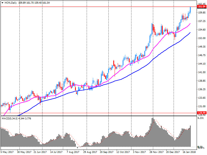 Акции HON на премаркете снизились до уровня $160.00 (-1.14%).