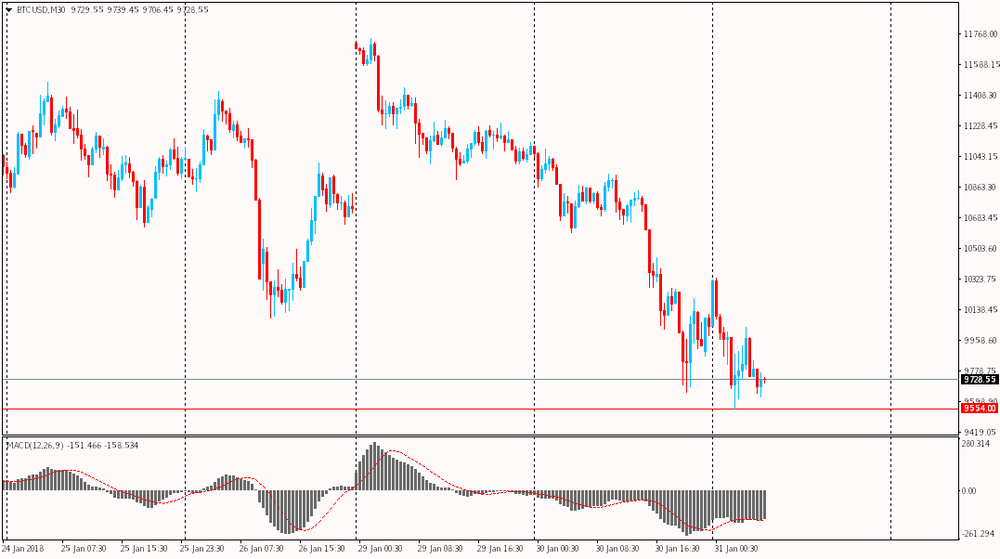 Со вчерашнего дня курс биткойна находится под сильным давлением. Вчера криптовалюта упала ниже психологической отметки $10000, а сегодня обвалилась к уровню $9554. Большинство аналитиков связывают данное падение стоимости биткойна с намерением Facebook запретить кукую либо рекламу криптовалют в своей соцсети. Под запрет попали также ICO и бинарные опционы. С декабря 2017 рынок криптовалюты лихорадит и он никак не может вернутся в устойчивую бычью фазу.