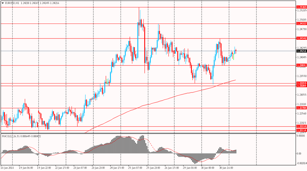 Сессия среды будет достаточно сильно насыщена макроэкономическими отчетами. Основным ожидаемым событием первой половины дня будут данные по инфляции в еврозоне (10:00 GMT). Во второй половине дня внимание участников рынков привлекут американские данные по занятости в частном секторе от ADP (13:15 GMT) и статистика по запасам сырой нефти (15:30 GMT), а также канадский ежемесячный отчет по ВВП (13:30 GMT). Но основным событием дня будет заседание Комитета по открытому рынку (FOMC) ФРС, итоги которого будут озвучены в 19:00 GMT. Январское заседание регулятора не является расширенным (оно сопровождается обновлением экономических прогнозов и пресс-конференцией председателя), поэтому какие-либо изменения в денежно-кредитной политике ФРС крайне маловероятны. Сопроводительное заявление федрезерва должно будет содержать тезисы об улучшении ситуации в американской экономике, что укрепит уверенность участников рынков в дальнейшем повышении ставок. Текущее заседание является последним для Джанет Йеллен в качестве главы ФРС.