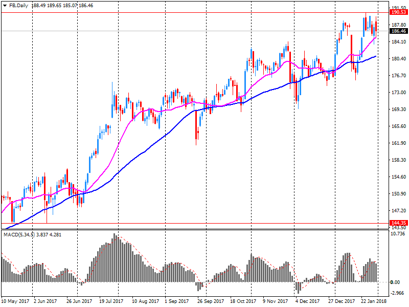 Согласно обнародованному отчету, прибыль компании Facebook (FB) по итогам четвертого квартала 2017 финансового года (ФГ) достигла $2.21 в расчете на одну акцию (против $1.41 в четвертом квартале 2016 ФГ), что оказалось выше среднего прогноза аналитиков на уровне $1.97.