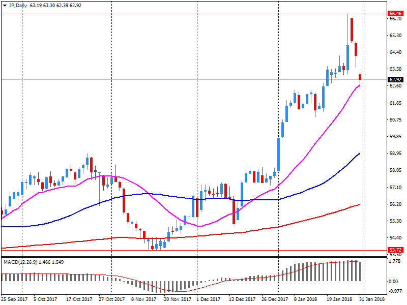 Акции IP по итогам торгов среды закрылись на уровне $62.86 (-2.09%).