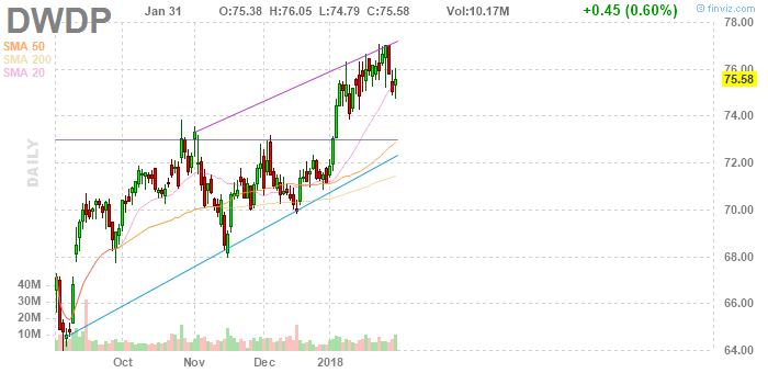 Акции DWDP на премаркете снизились до уровня $74.81 (-1.02%).