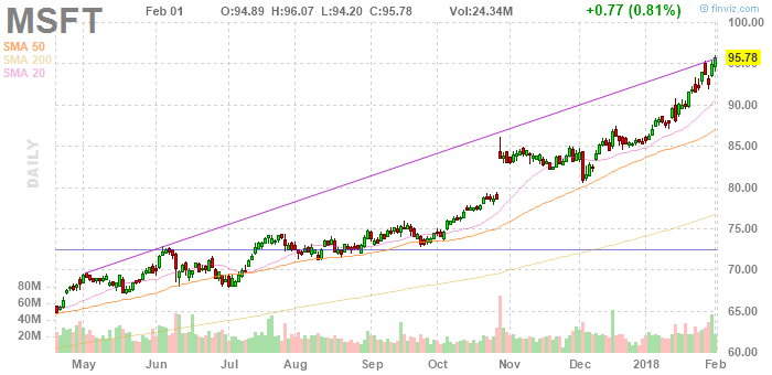 На текущий момент акции Microsoft Corp (MSFT) котируются по $95,78 (+0,81%)
