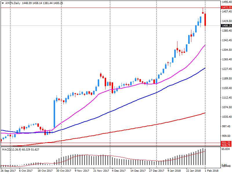 Согласно обнародованному отчету, прибыль компании Amazon (AMZN) по итогам четвертого квартала 2017 финансового года (ФГ) достигла $2.19 в расчете на одну акцию (против $1.54 в четвертом квартале 2016 ФГ), что оказалось выше среднего прогноза аналитиков на уровне $1.83.