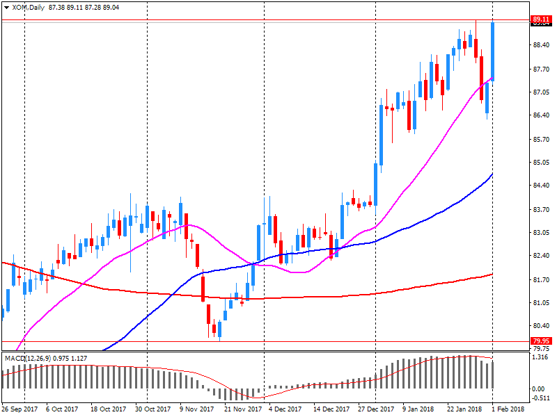 Согласно обнародованному отчету, прибыль компании Exxon Mobil (XOM) по итогам четвертого квартала 2017 финансового года (ФГ) достигла $0.88 в расчете на одну акцию (против $0.41 в четвертом квартале 2016 ФГ), что оказалось выше среднего прогноза аналитиков на уровне $1.03.