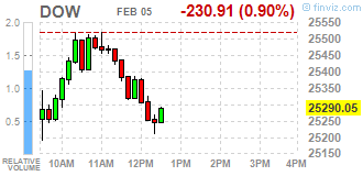 Большинство компонентов индекса DOW в минусе (26 из 30). Лидер роста - Intel Corporation (INTC, +1.02%). Аутсайдер - Exxon Mobil Corporation (XOM, -3.69%).