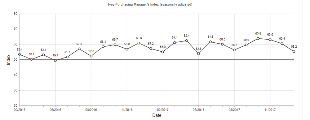 Результаты исследований, представленные Ассоциацией менеджеров по закупкам Канады и Школой бизнеса Ричарда Айви, показали: индекс деловой активности менеджеров ухудшился по итогам января.