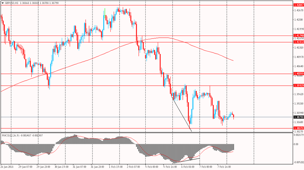 GBP/USD: в ходе азиатской сессии пара торговалась в диапазоне $1.3870-15. Пара все еще сохраняет бычий сценарий от 3 ноября несмотря на резкое 3-х дневное снижение. В этой ситуации наиболее уместным будет искать возможность для покупок пары на окончании данной коррекции. Более того, на часовом графике сформировалась бычья дивергенция по индикатору MACD, что сигнализирует о возможном начале роста пары. Ближайшей поддержкой выступает уровень $1.3840 (минимум 6 февраля)
