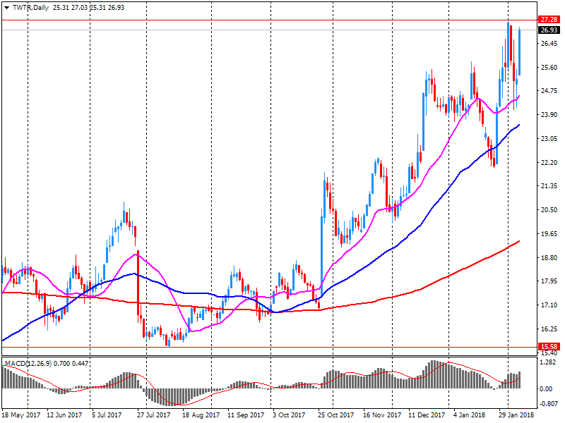 Акции TWTR на премаркете выросли до уровня $33.26 (+23.6%).