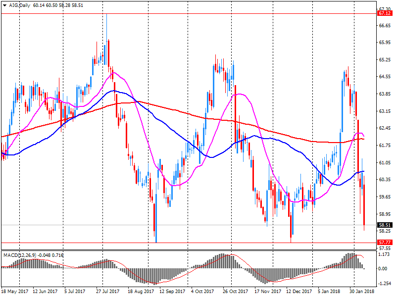 Согласно обнародованному отчету, прибыль компании American Intl (AIG) по итогам четвертого квартала 2017 финансового года (ФГ) достигла $0.57 в расчете на одну акцию (против -$2.96 в четвертом квартале 2016 ФГ), что оказалось ниже среднего прогноза аналитиков на уровне $0.75.