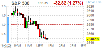 Большинство секторов S&P в минусе. Больше всего вырос сектор коммунальных услуг (+0.4%). Наибольшее снижение показывает сектор конгломератов (-2.4%).